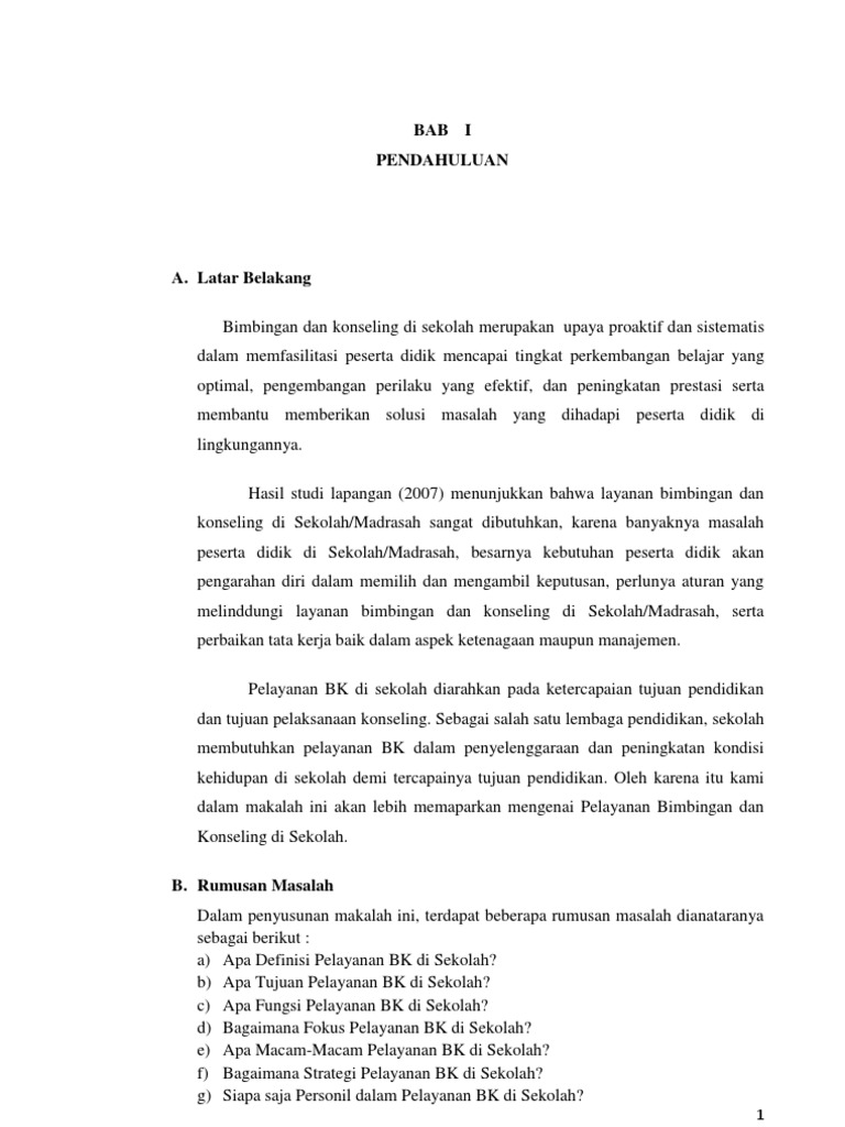 Contoh kesimpulan makalah bimbingan konseling. Tulisan berikut ini merupakan Makalah Tugas Kuliahku. Pembacaguru sebagai media informasi tentang sistem pola 17 bimbingan dan konseling baik secara teoritis maupun secara praktis. Pelaksanaan program bimbingan di sekolah dasar dilaksanakan oleh guru kelas dan diketahui oleh kepala sekolah dan pendekatan yang dipakai dalam pelaksanaan program BK di SD yang.