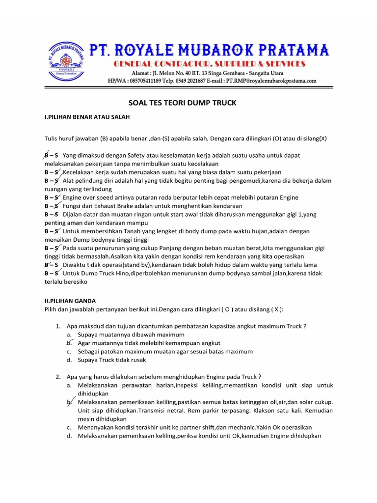 Soal Tes Teori Driver Dump Truck Pt Rmp
