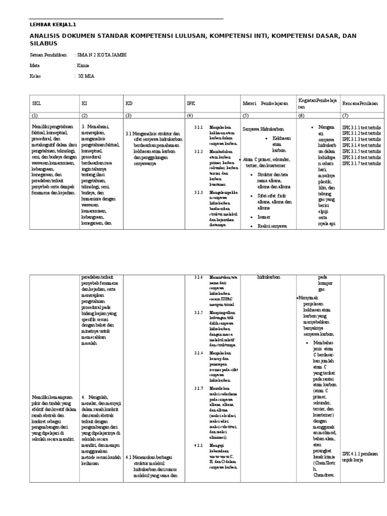 Analisis Sk Kd Ipk Silabus Kimia Xi
