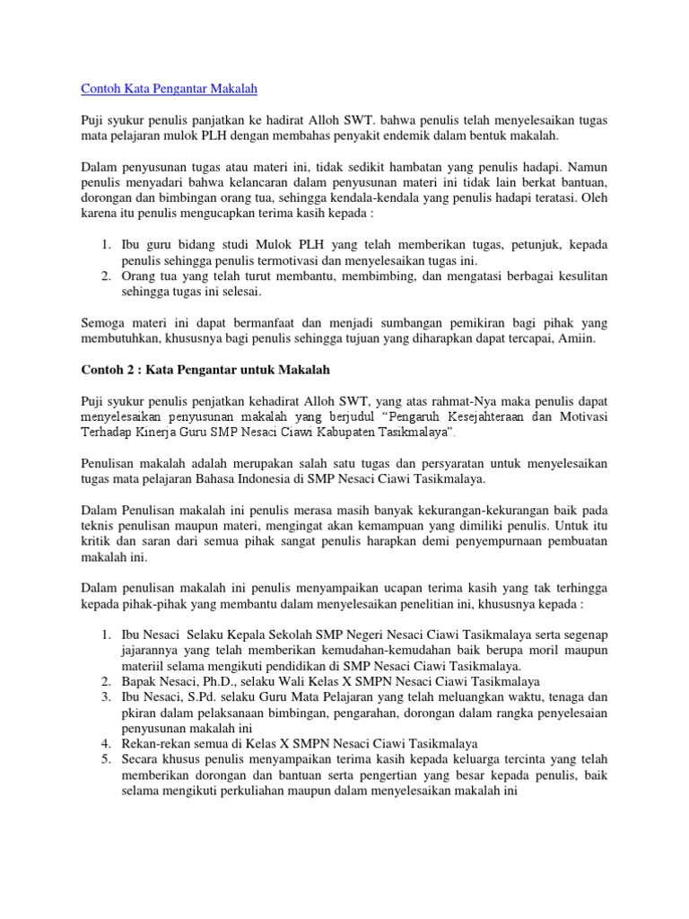 Pengertian kata pengantar makalah. Perbedaan antara keduanya adalah pada siapa yang menuliskannya. Tidak ada tuhan dan ilah yang patut di sembah dan diibadahi selain Dia.
