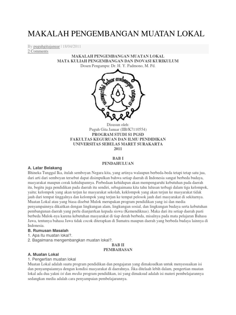Makalah Pengembangan Muatan Lokal