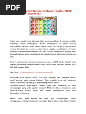 A semua siswa menjadi siap. Berdasarkan pengertian diatas model pembelajaran NHT numbered head together yaitu pembelajaran kooperatif yang dilakukan dengan melibatkan para siswa untuk saling berinteraksi serta berfikir bersama sehingga setiap siswa dapat aktif dalam penguasaan materi dengan cara menggunakan nomor pada kepala masing-masing siswa sebagai identitas yang memudahkan guru untuk. Penerapan Metode Kooperatif Numbered Head Together NHT untuk Meningkatkan Minat dan Hasil Belajar Al-Quran Hadits pada Materi Surat al-Lahab Siswa Kelas IV A MI Sabilul Ulum Mayonglor Mayong Jepara Tahun Pelajaran 20102011.
