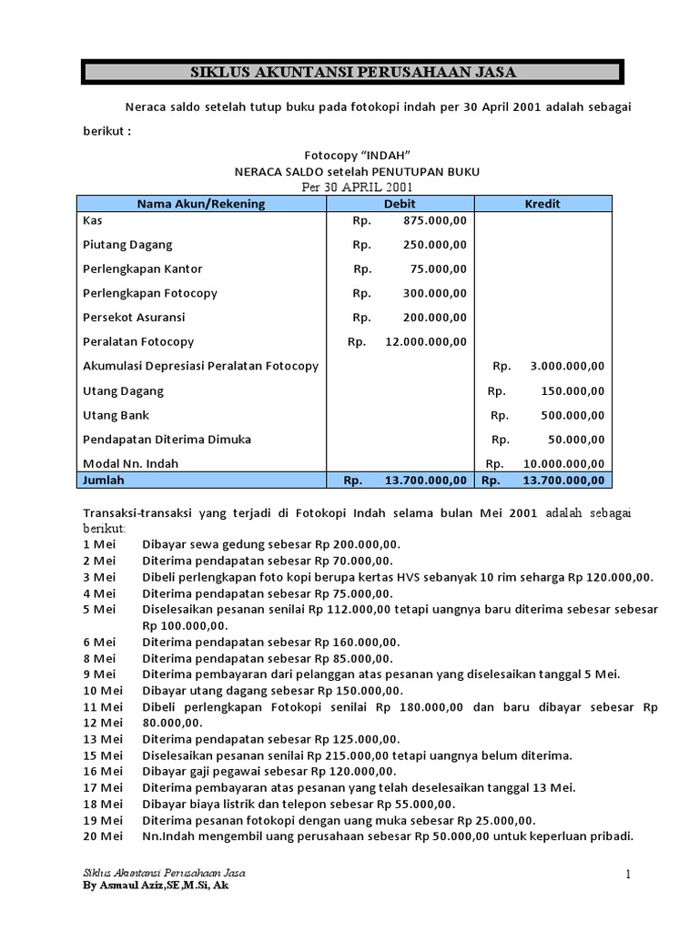 Contoh Soal Akuntansi Perusahaan Jasa Fotocopy Guru Paud