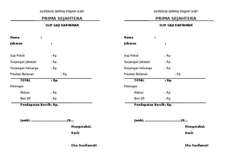 Contoh Slip Gaji Karyawan Koperasi Simpan Pinjam Ilmusosial Id