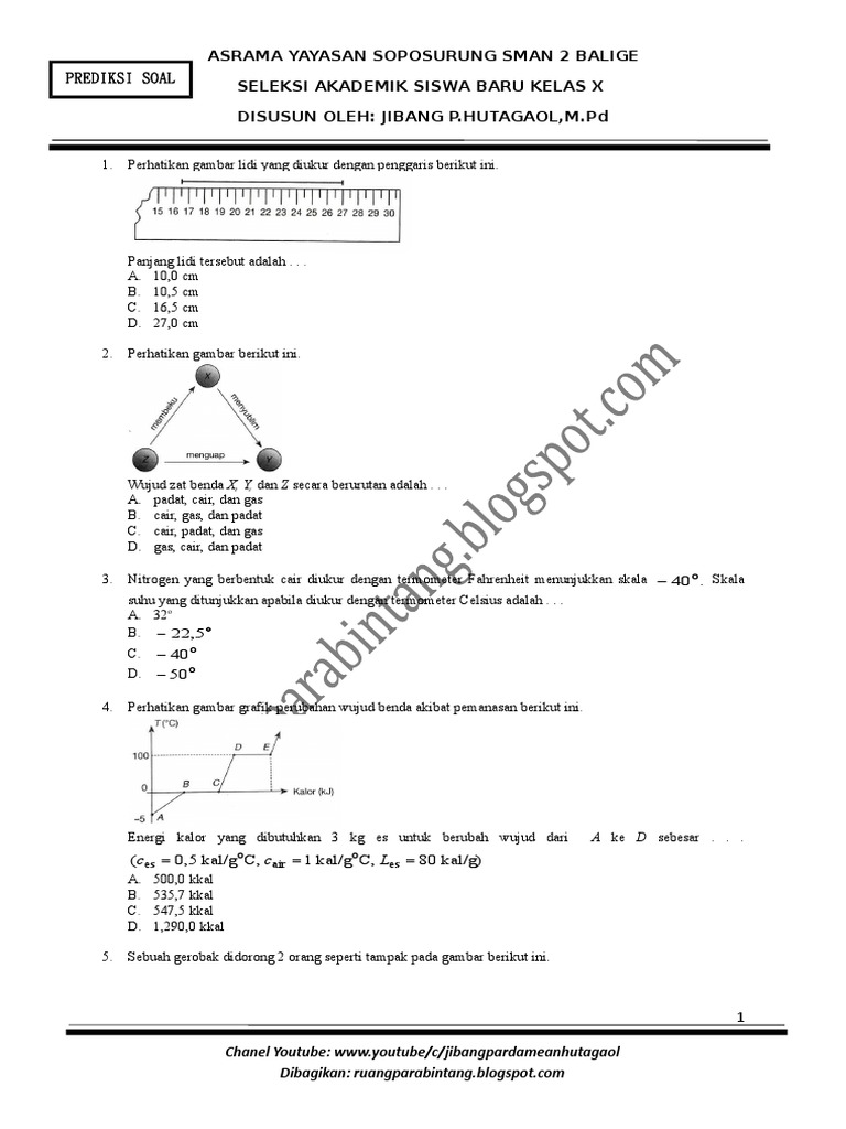 30 Soal Dan Pembahasan Seleksi Akademik Masuk Asrama Yayasan Tb Soposurung Asrama Yasop Sman 2 Balige 2008 Defantri Com