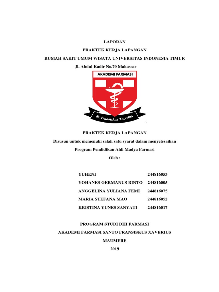 Laporan praktek kerja profesi apoteker pkpa rumah sakit 18 mei 17 juli 2020 periode liv disusun oleh. 198110 6200040 12 006 Menyetujui Kepala Sekolah Smk Kesehatan Plus Prima Mandiri Sejahtera Makassar IrMuh Akbar Aziz SSi MKes Apt NIP. Sistematika penulisan dalam penyusunan laporan PKL ini adalah sebagai berikut.