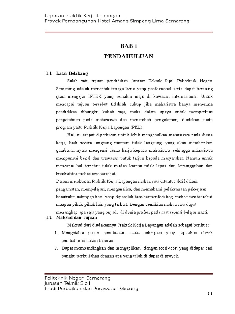 Doc Laporan Pkl Proyek Pembangunan The Bandha Hotel Bab I Wah Sanjaya Academia Edu