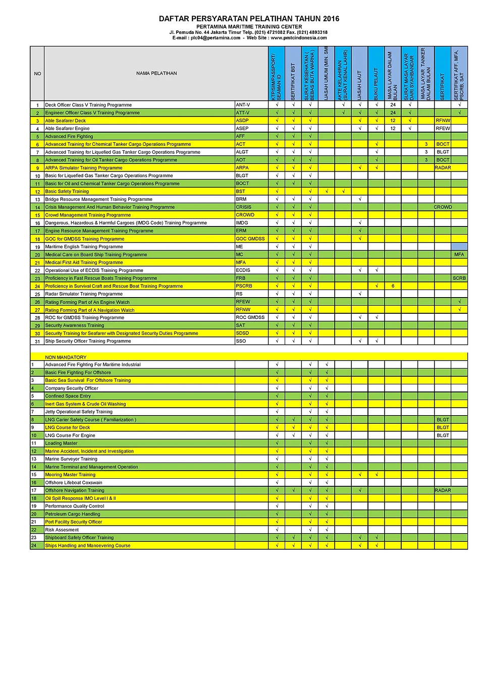 SOMA offers several courses in the offshore en maritime sector. Menyerahkan fotokopi identitas diri yang masih berlaku KTP SIM atau Paspor. Pertamina Maritime Training Center berdiri sejak tahun 1984 berlokasi di Jl.