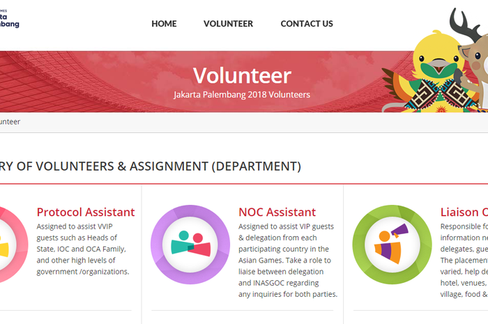 Persyaratan volunteer asian games 2018. 21 Negara Pastikan Diri Ikuti Test Event Asian Games 2018 Kebutuhan volunteer akan dibagi menjadi tiga kategori yaitu Protocol Assistant NOC Assistant dan Liaison Officer yang dialokasikan untuk 19 departemen atau functional areas seperti Venue Medical dan Doping Control Media dan Public Relations Ceremonies Ticketing Catering dan Transportation. Rekrutmen volunteer Asian Games sepenuhnya akan dilakukan personalia INASGOC. Sistem rekruitmen online merupakan kerja sama antara Departemen Human Resource Volunteer.
