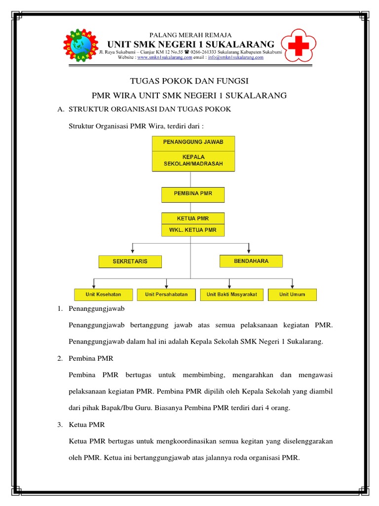 Tugas Pokok Dan Fungsi Pmr Wira Unit Smk Negeri 1 Sukalarang Pdf Document