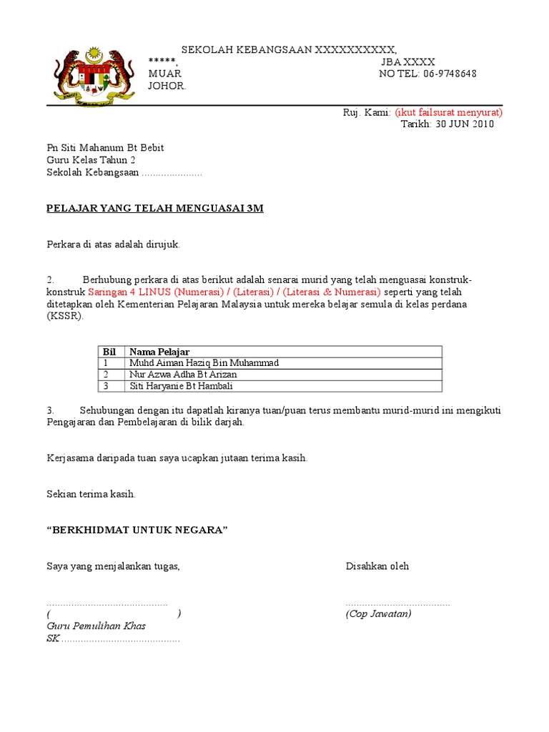 Pelepasan Murid Luar Negara LN Sila tanda pada petak yang dipilih Sila baca dan patuhi peraturan panduan permohonan cuti tanpa rekod Pihak penganjur hendaklah mematuhi perkara yang disenaraikan D. 13 Contoh Surat Rekomendasi Kerja Dan Beasiswa Yang Benar. Mutasi sendiri sudah menjadi hal yang wajar di dunia profesi guru.