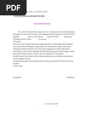 Kata pengantar daftar isi laporan penggunaan dana bos. Bapak Kepala Kantor Kementerian Agama Kabupaten Musi Rawas Cq. Untuk periode Januari sampai Desember.