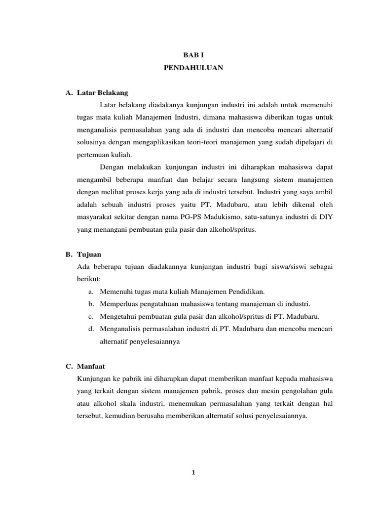 Contoh pendahuluan dalam makalah kunjungan industri. 38 PERMODALAN DAN KEPEMILIKAN PERUSAHAAN Salah satu faktor yang paling penting dalam menjalankan suatu usaha adalah permodalan karena tanpa permodalan suatu usaha tidak akan berjalan dengan baik. Di dalam rangkaian kunjungan industri dapat diketahui profil dunia usaha industri atau instansi yang relevan informasi mekanisme kerja. Sekolah Menengah kejuruan perlu diadakanya kunjungan Industri KI.
