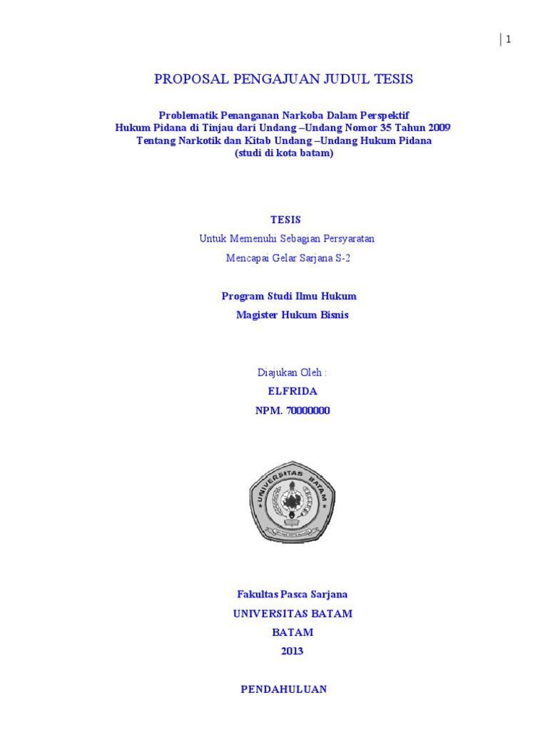 Petunjuk ini digunakan untuk menulis proposal tesis dan disertasi dalam bahasa Indonesia. Ilmu Hukum Program Kekhususan. Contoh proposal tesis hukum pidana.