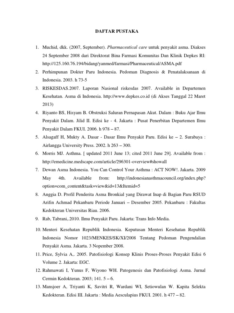 Daftar pustaka asma pdf. Asuhan Keperawatan Penyakit. Bener A Ehlayel MS Tulic MK Hamid Q. Pdf pada Desember 2019 Danokusumo Halim.