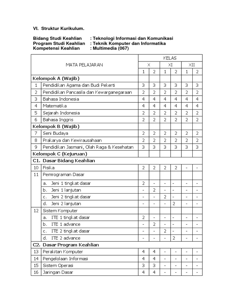 Doc Struktur Kurikulum Smk Jurusan Tav Mega Katsushika Academia Edu