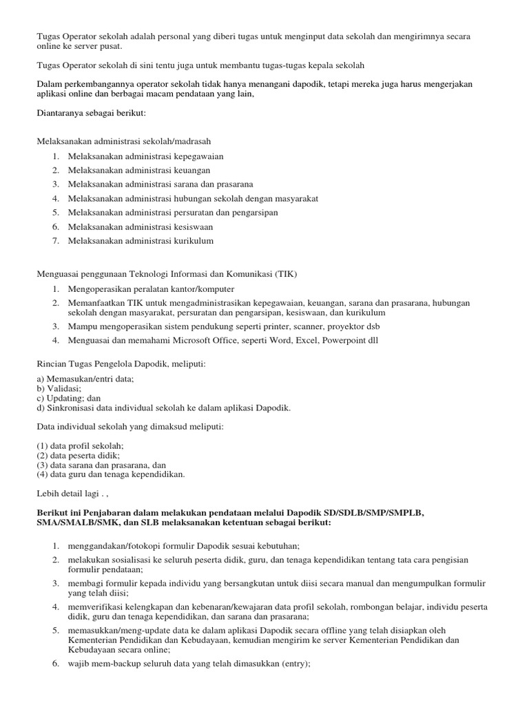 Tupoksi Operator Sekolah Tugas Pokok Dan Fungsi Operator Dapodik 2020 Vandi Id